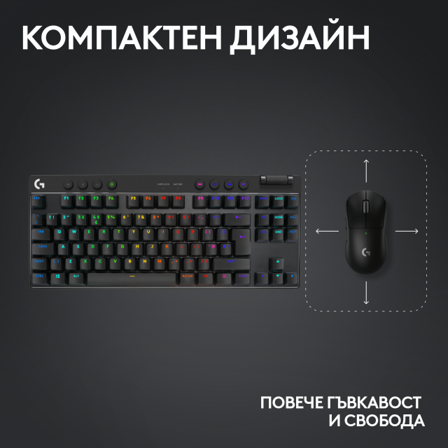 Безжична геймърска механична клавиатура Logitech G Pro X TKL Lightspeed Tactile Switch