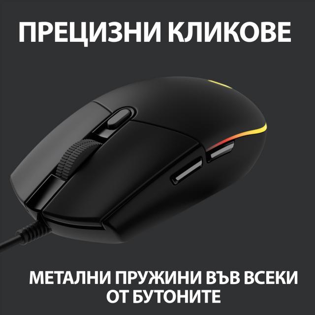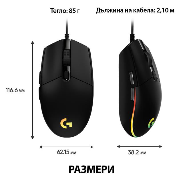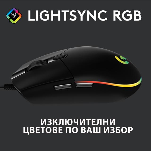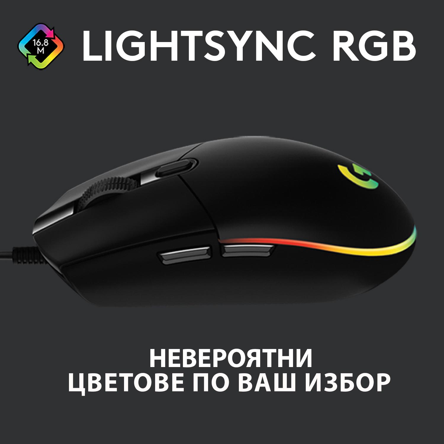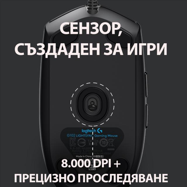 Геймърска мишка Logitech G102 LightSync, RGB, Оптична, Жична, USB