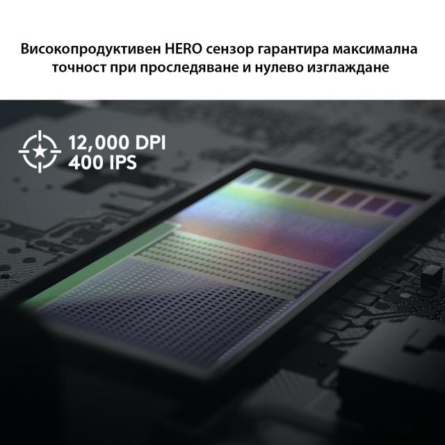 HERO сензорът от най-ново поколение предлага невероятно представяне и до 10 пъти по-добра енергийна ефективност, в сравнение с предните поколения. HERO е оптичен сензор с изключителна точност и чувствителност, която може да варира от 400 до 12 000 DPI.