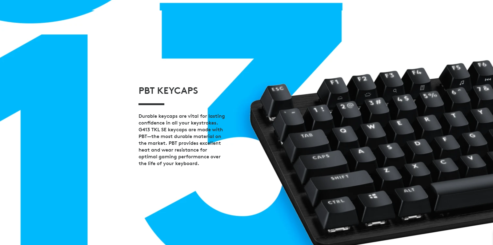 G413 TKL SE features a black brushed aircraft-quality 5052 low-carbon aluminum alloy top case, gaming-grade mechanical switches and PBT keycaps for a premium experience and superior durability.
