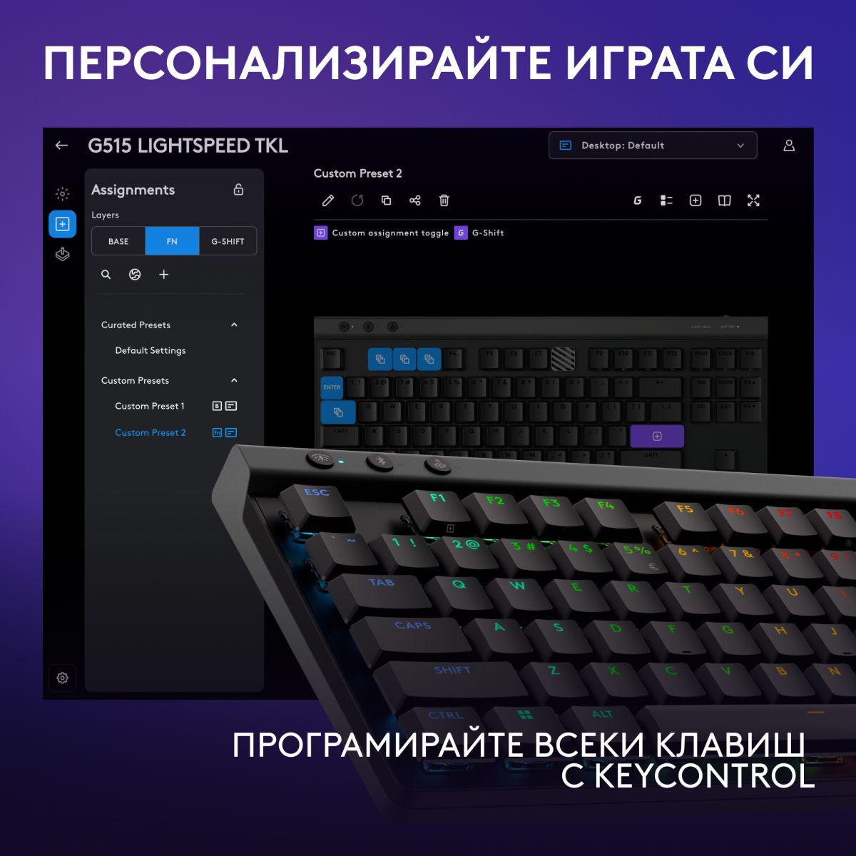 Logitech G515 LIGHTSPEED TKL осигурява