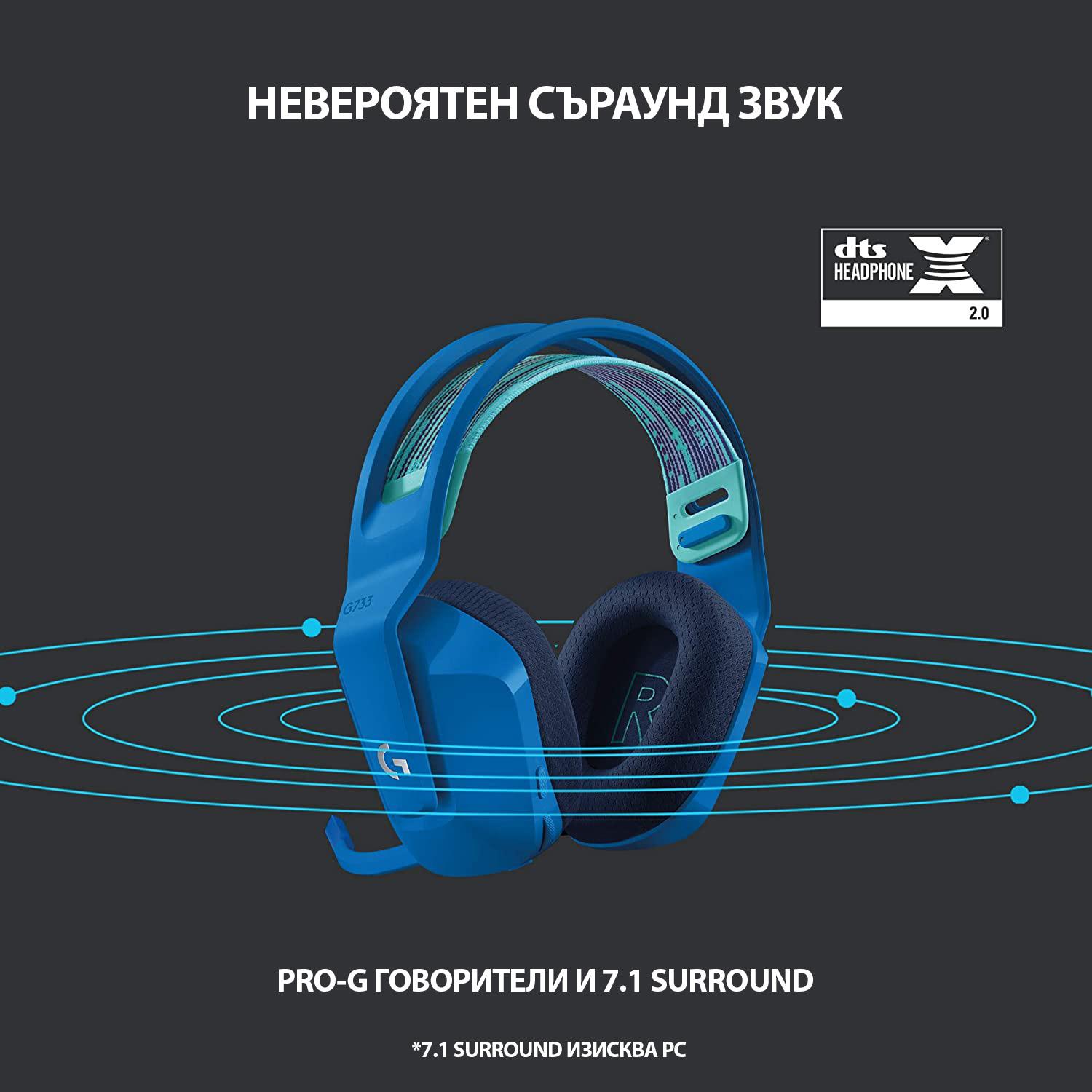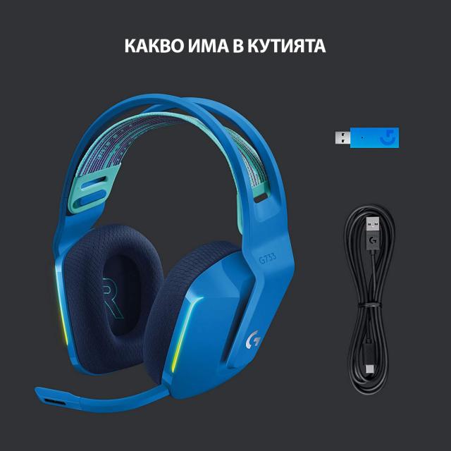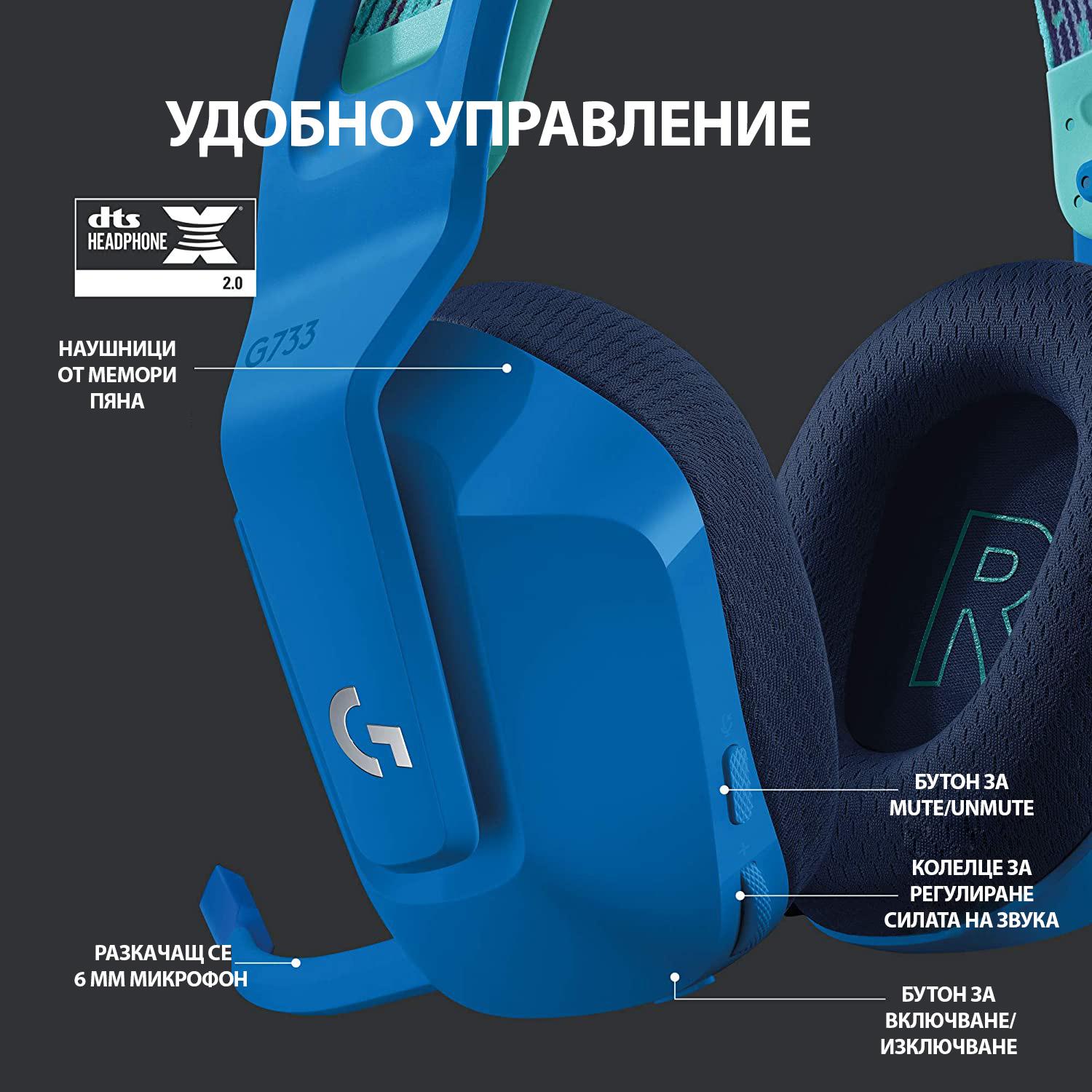 Геймърски слушалки Logitech G733 Blue Lightspeed Wireless RGB, Микрофон, Сини