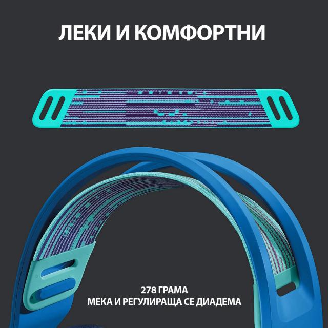 Само 278 г - това е теглото на 2 малки чийзбургера или 250 желирани бонбончета. G733 са супер леки и благодарение на ластичната им лента никога няма да ви натежат или убиват, а ще седят перфектно балансирани на главата ви, за да продължите да играете необезпокоявано.