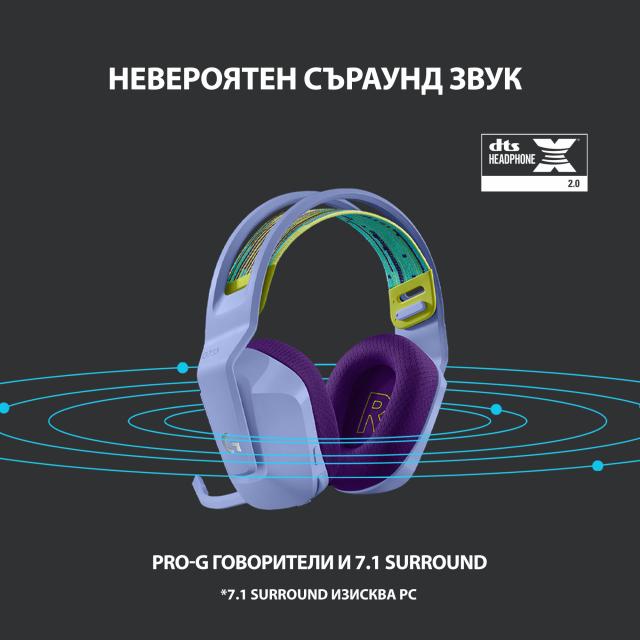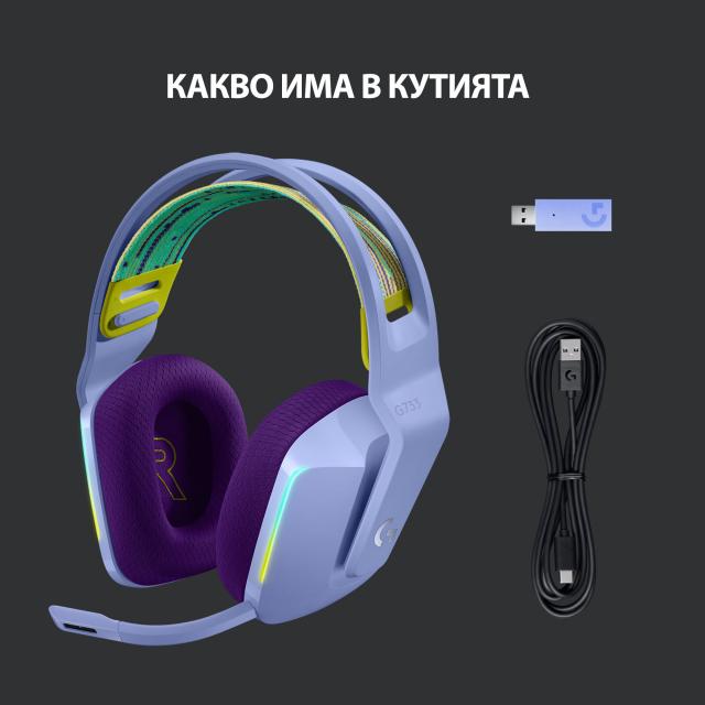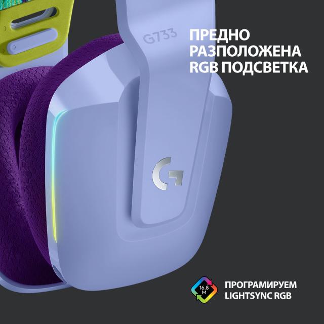 Геймърски слушалки Logitech G733 Lilac Lightspeed Wireless RGB, Микрофон, Лилави