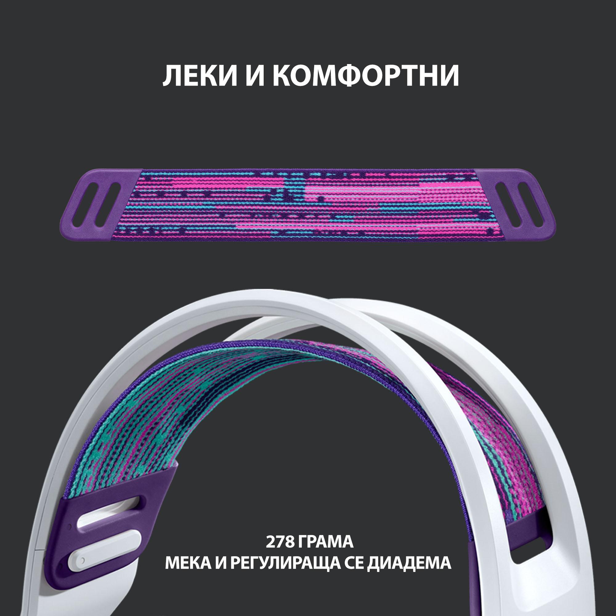 Само 278 г - това е теглото на 2 малки чийзбургера или 250 желирани бонбончета. G733 са супер леки и благодарение на ластичната им лента никога няма да ви натежат или убиват, а ще седят перфектно балансирани на главата ви, за да продължите да играете необезпокоявано.