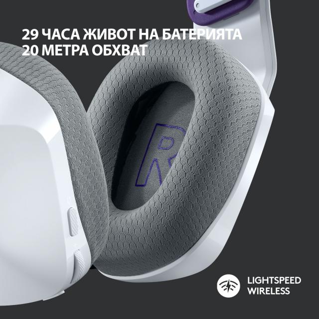 LIGHTSPEED безжичната технология ще ви даде 29+ часа живот на батерията и до 20 метра сигурна връзка с приемника (това може да варира спрямо средата и ползвателя). Цитираният живот на батерията е въз основа на силата на звука на слушалките, зададена на 50% и при изключена подсветка. Играйте без да се оплитате в кабели. Отпуснете се и се потопете в игра, музика, филм или каквото поискате. Бъдете свободни и играйте по вашия начин.