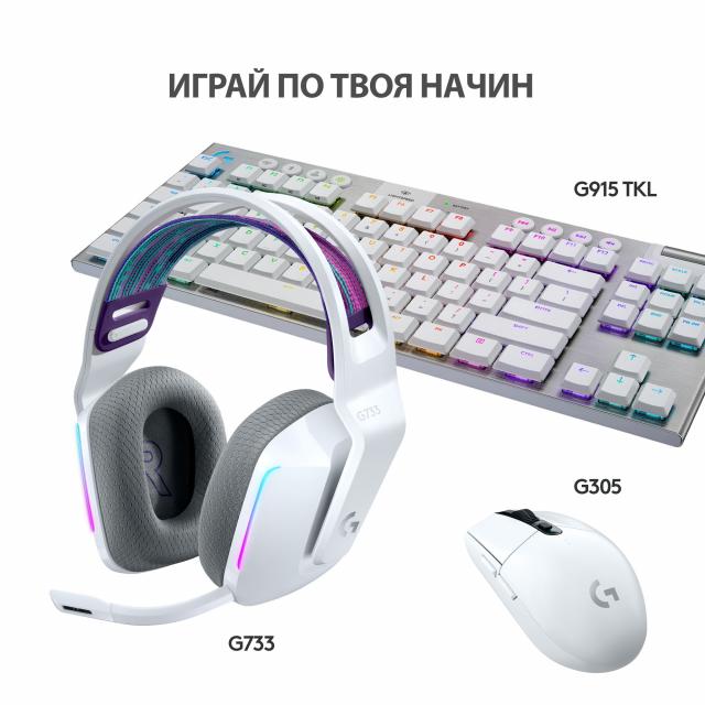 Геймърски слушалки Logitech G733 Lightspeed Wireless RGB, Микрофон, Бели