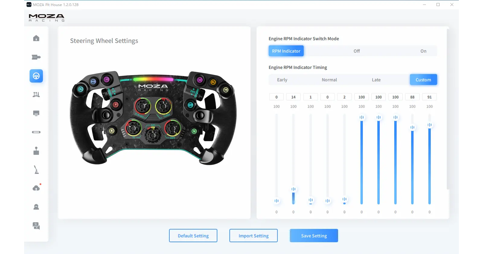 В MOZA Pit House можете да конфигурирате лостовете с двоен съединител, копчетата, джойстиците, светлините за оборотите и т.н. на волана,