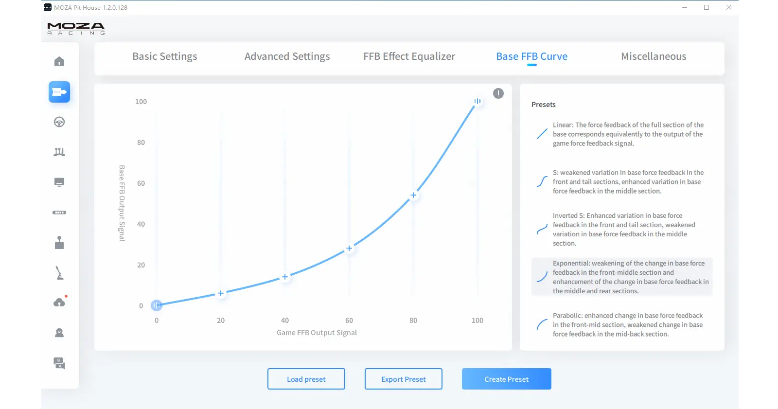 С революционната функция на MOZA за настройка на кривата на обратната връзка, връзката между входа и изхода на силата