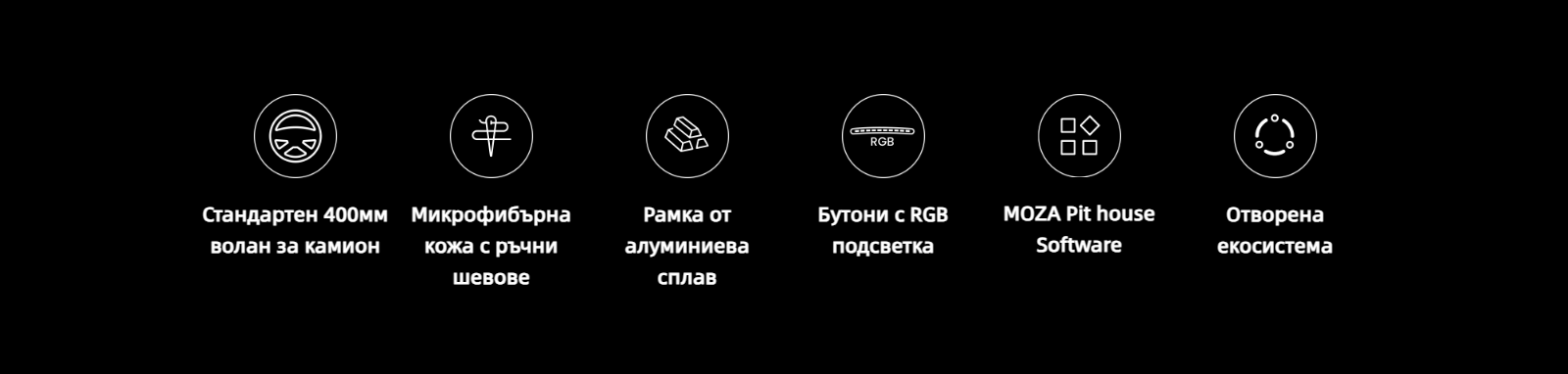 | Алуминиеви колела за палец | 2 | Съвместимост | Съвместим с всички основи на MOZA, работи и с основи от други производители чрез MOZA Universal Hub Kit |