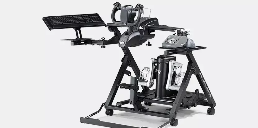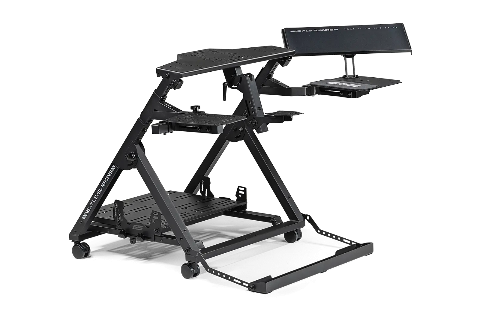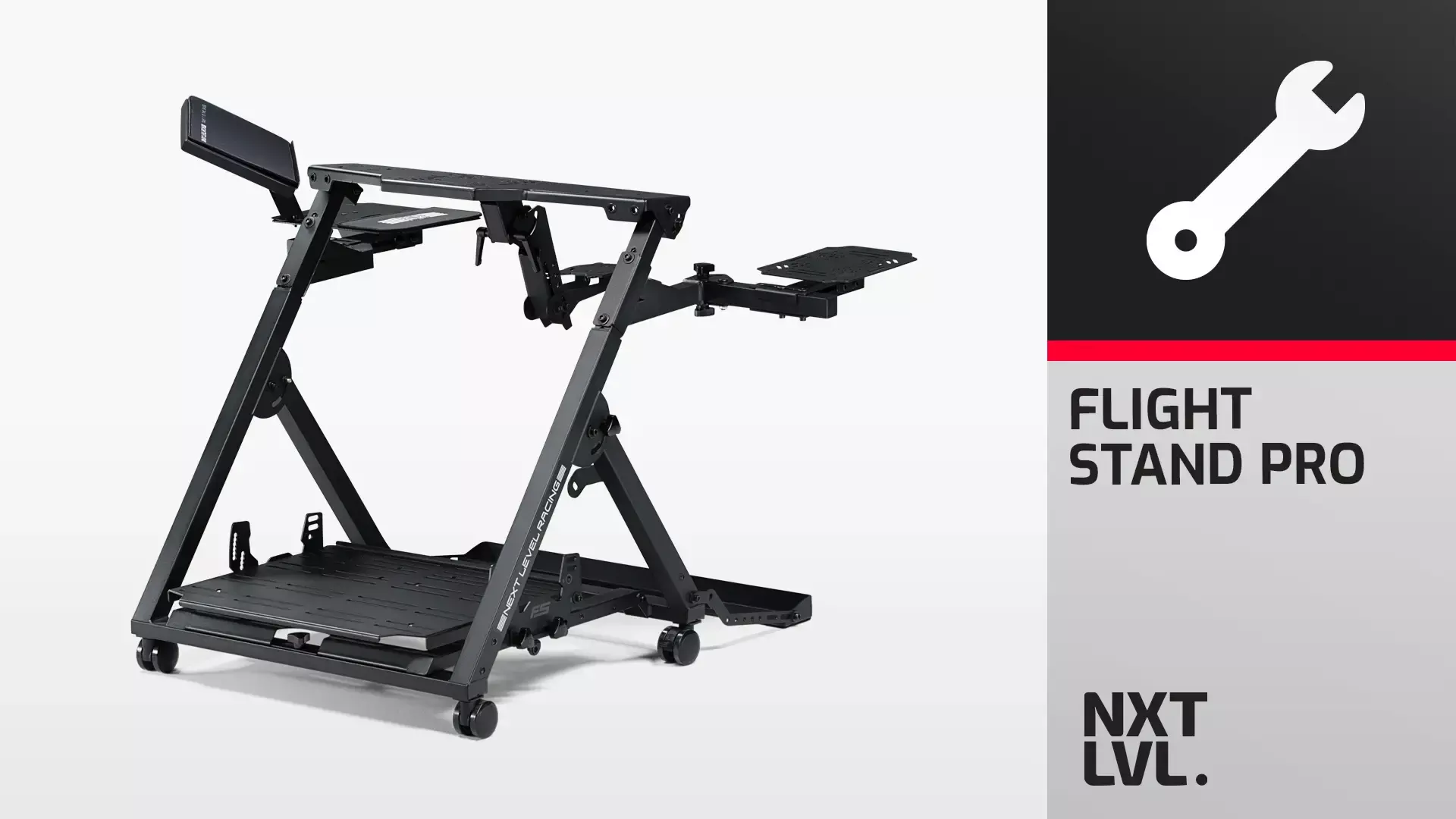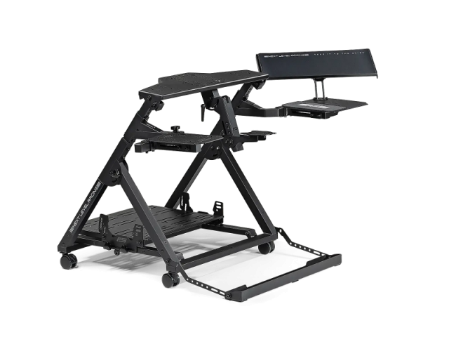 Introducing the Next Level Racing Flight Stand Pro – the ultimate flight simulation experience. With support for commercial, general aviation, and military configurations, this flight stand offers an authentic simulation experience. The centre HOTAS mounting pole with height and angle adjustment allows for true military configuration, and compatibility with major flight electronics. The wide frame design and rudder pedal plate with angle, height, and lateral adjustment accommodates a wide range of rudder pedals. Adaptable to any space, this stand is equipped with castor wheels that allow for easy transportation. The swivel flight arm and mouse/keyboard holder with angle adjustment provides a range of adjustment with customization opportunities. The Flight Stand Pro offers limitless possibilities for your flight simulation. Upgradeable to the full Flight Simulator Pro cockpit with the addition of the Next Level Racing Flight Seat Pro. For a more immersive experience, the Flight Stand Pro is also compatible with Next Level Racing Motion Plus Platform and Motion Platform V3.