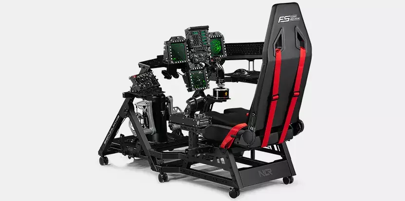 The Next Level Racing Flight range has been specifically designed and developed with flight users in mind. The combination of Flight Seat Pro and Flight Stand Pro offer a range of different configurations to suit the needs of every flight user. The combination is compatible with the Next Level Racing Motion Plus Platform, providing an even more immersive flight experience. Additionally, the Flight Stand Pro is compatible with Next Level Racing Flight Seat Pro, ensuring a seamless integration. With configurations available for General Aviation, Commercial, Space, Military, and helicopter setups, users can choose the perfect configuration to suit their needs. Flight users can create a commercial flight configuration by attaching a wide range of yokes, rudders, and throttles directly to the cockpit. A military configuration is possible with a unique cut-out design of the seat to attach the Hotas center stick directly to the unique center stick arm and plate, providing an immersive combat experience. For general aviation, several adaptor plates are provided to ensure cross compatibility of electronics on the market to be attached directly to the cockpit. Space users can utilize the included Keyboard and Mouse tray to attach the two joysticks and have their keyboard and mouse within reach for the most reactive gaming experience.