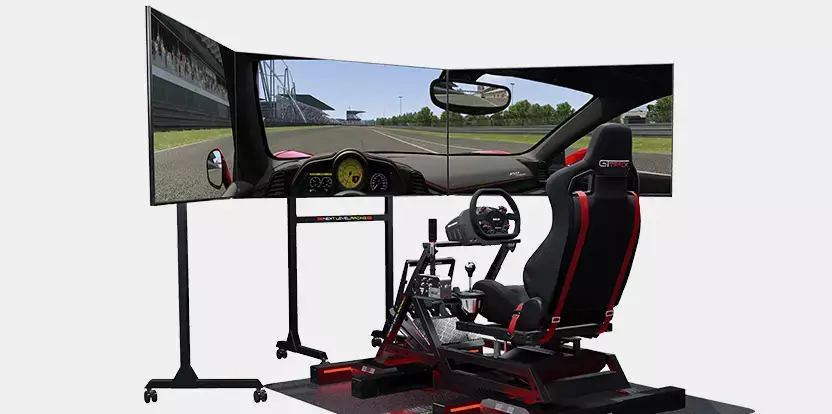 The Next Level Racing Free Standing Monitor Stand completes your racing simulator setup by offering the ultimate immersive professional racer experience. The stand supports three screens from 32”-65” enabling an awe-inspiring 195° of peripheral vision for an incredibly realistic experience. A perfect solution for an immersive simulation experience.