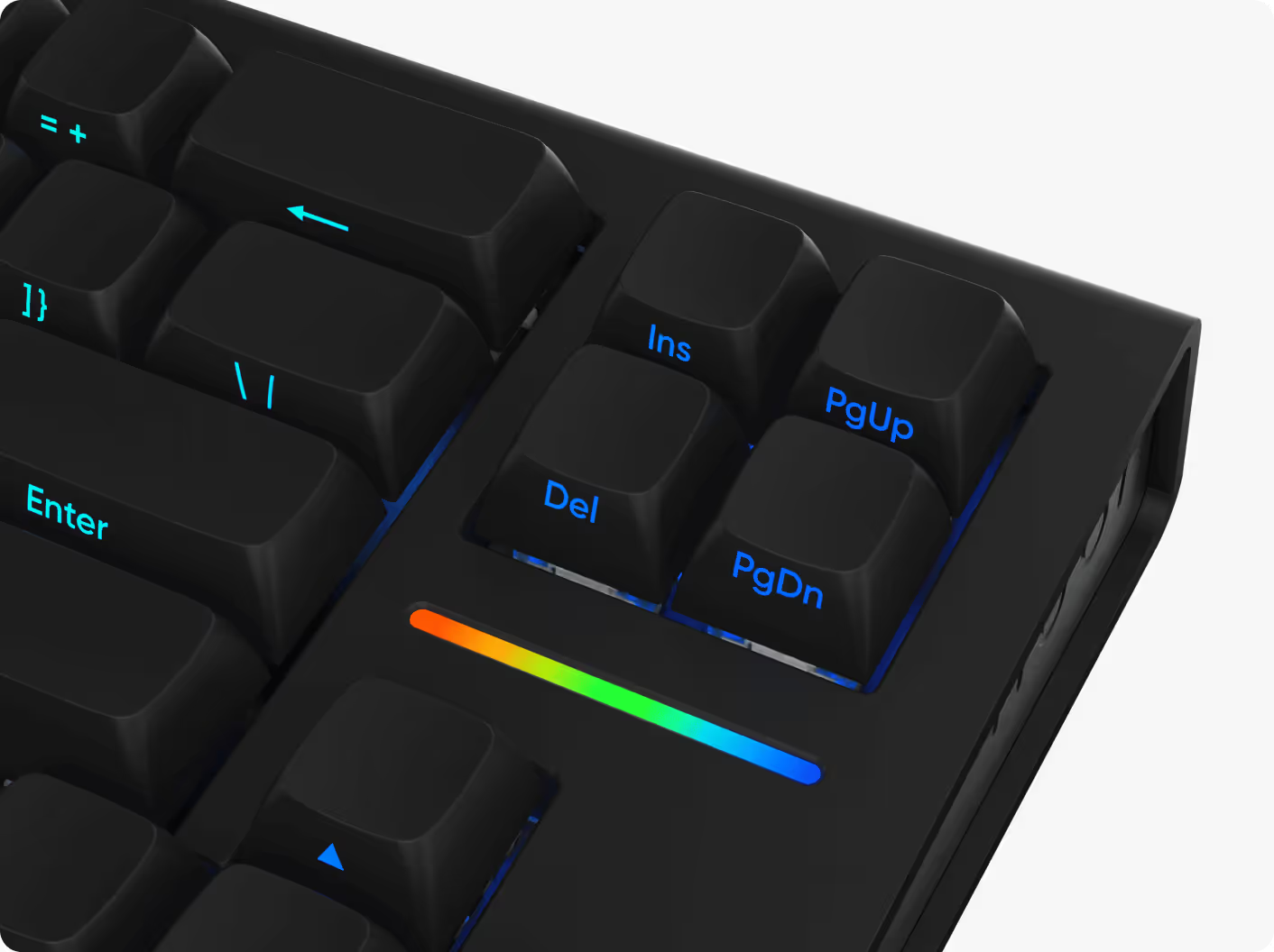 | RGB lighting with full customization | Weight: ~960 g, solid and stable | Cross-platform: Windows, macOS, Linux | Compact 65% layout (68 keys) |