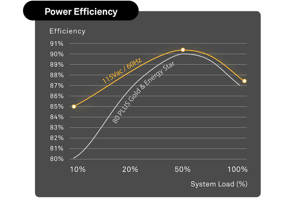 | Rating | 80 Plus Gold | 50% loading | 91.55% @115Vac |