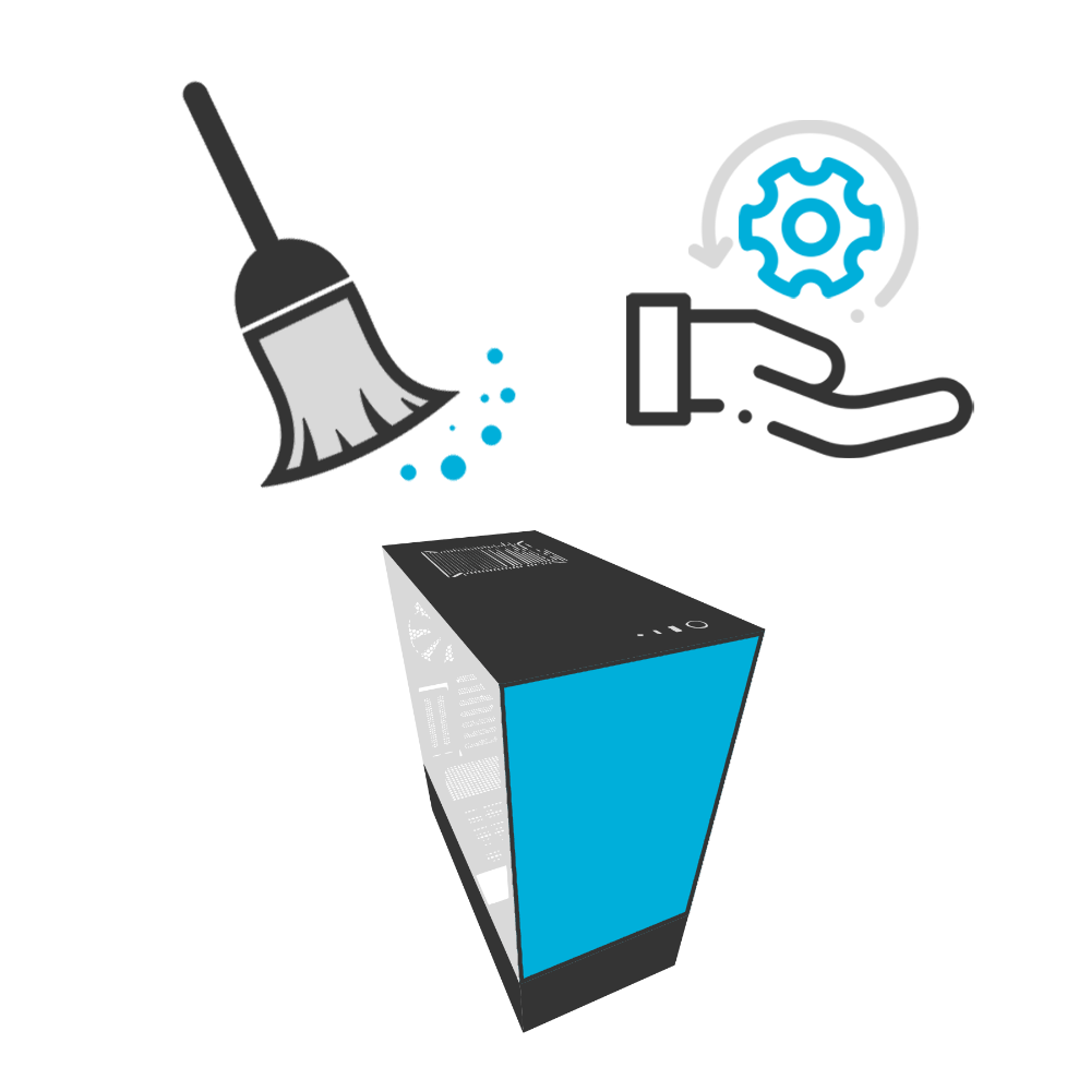 Разглобяване на конфигурацията. Почистване с компресор на компонентите и кутията. Сглобяване на конфигурацията. Тест на системата.