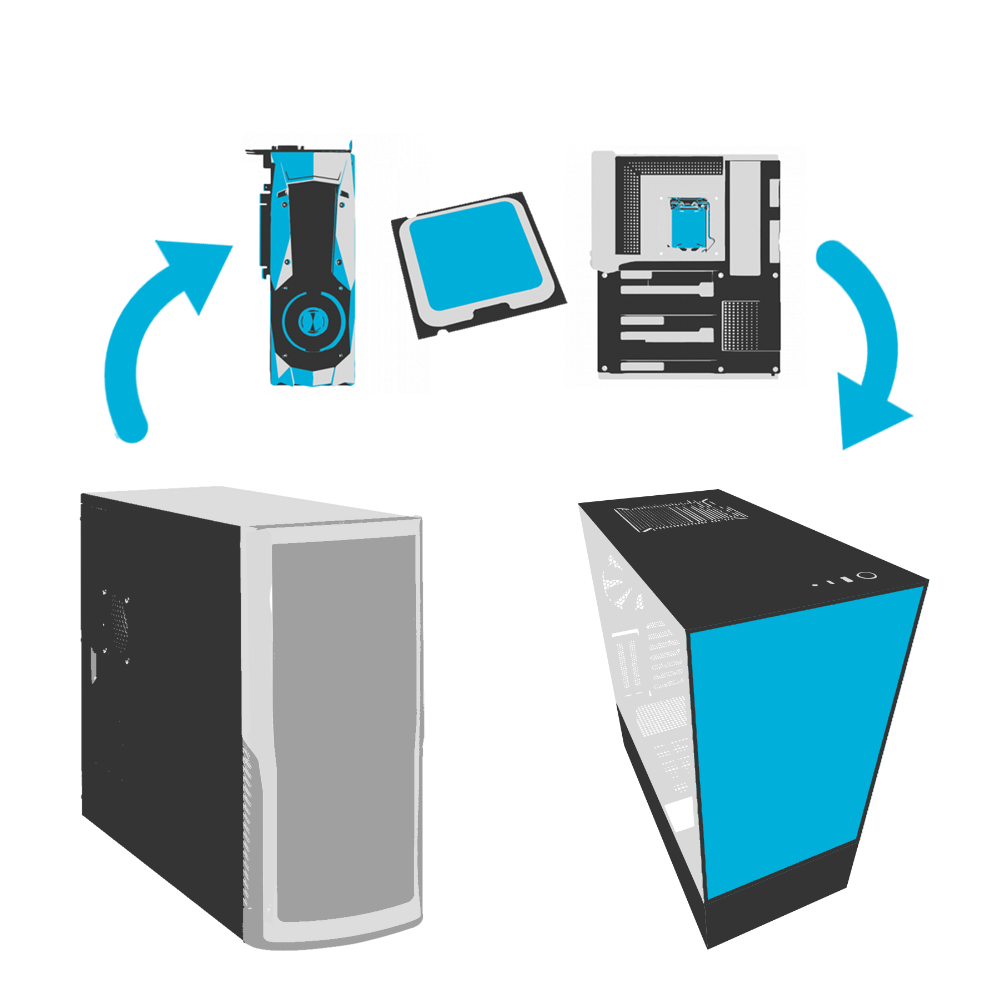 Почистване и демонтиране на компонентите от старата конфигурация. Монтаж, слагане на термо паста и кейбъл мениджмънт на компонентите в новата кутия. Тестване на системата.