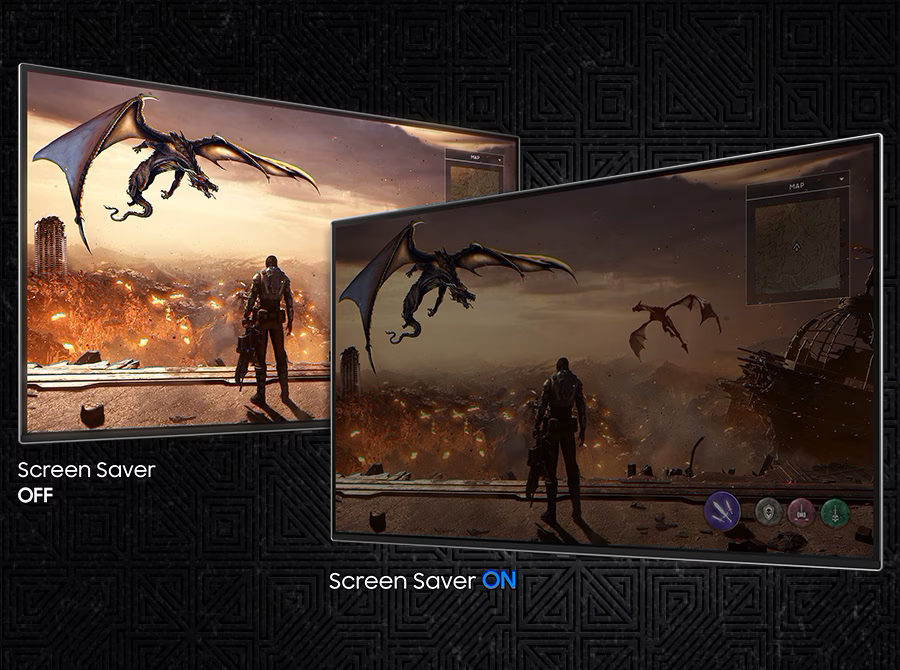 Яркостта на статични изображения, като лога и ленти на задачите, се намалява автоматично, за да се предотврати програряне на изображение на екрана.