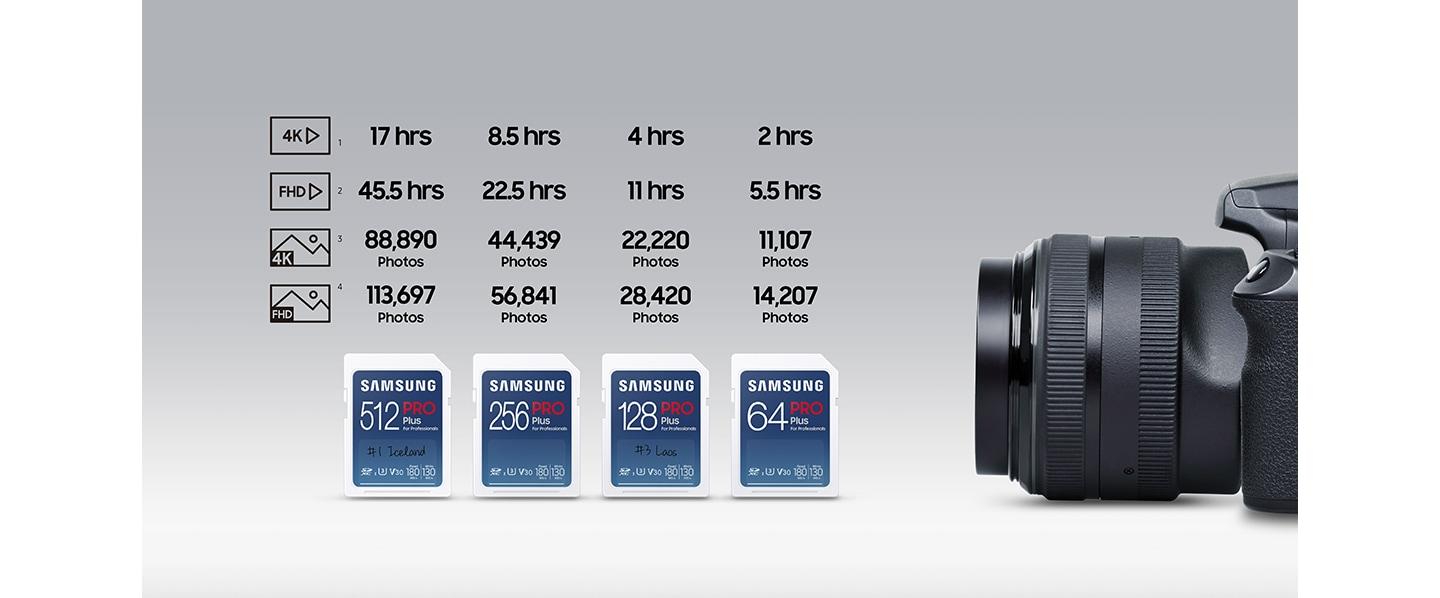 Създадена да издържи, Samsung PRO Plus предлага надеждност в различни размери, което прави тази SD карта идеален избор за фотографи,
