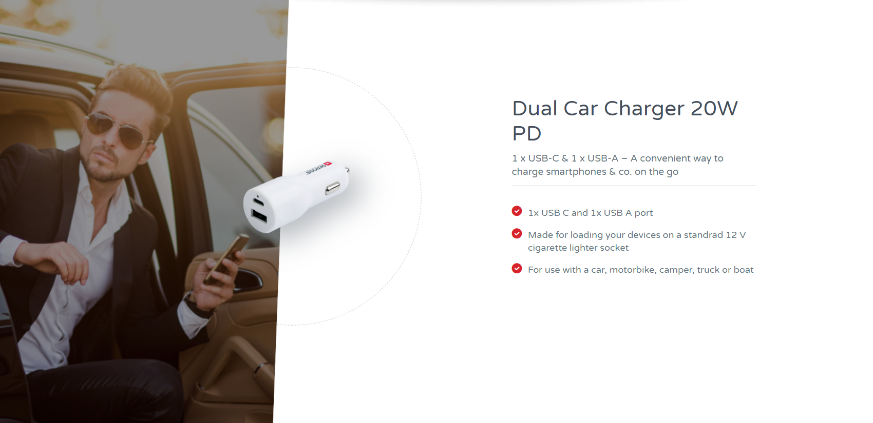Зарядно за кола SKROSS, USB-A, USB-C, PD, 20W