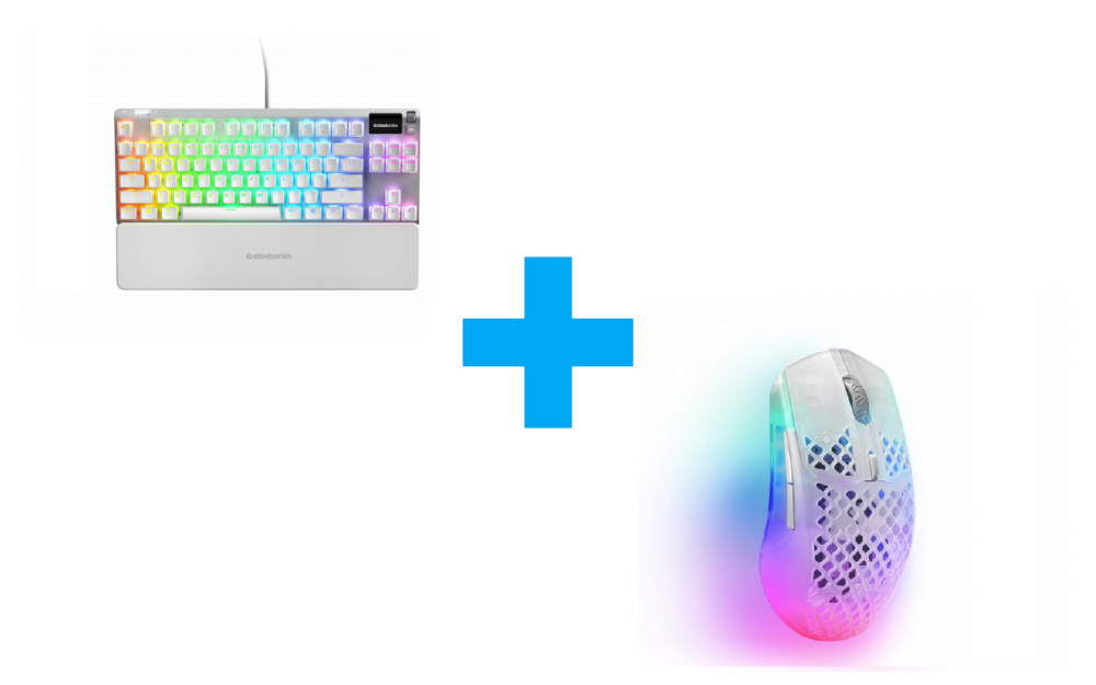 Комплект клавиатура и мишка Steelseries Apex 7 Ghost TKL Red Switch + SteelSeries, Aerox 3 Wireless (2022) Ghost