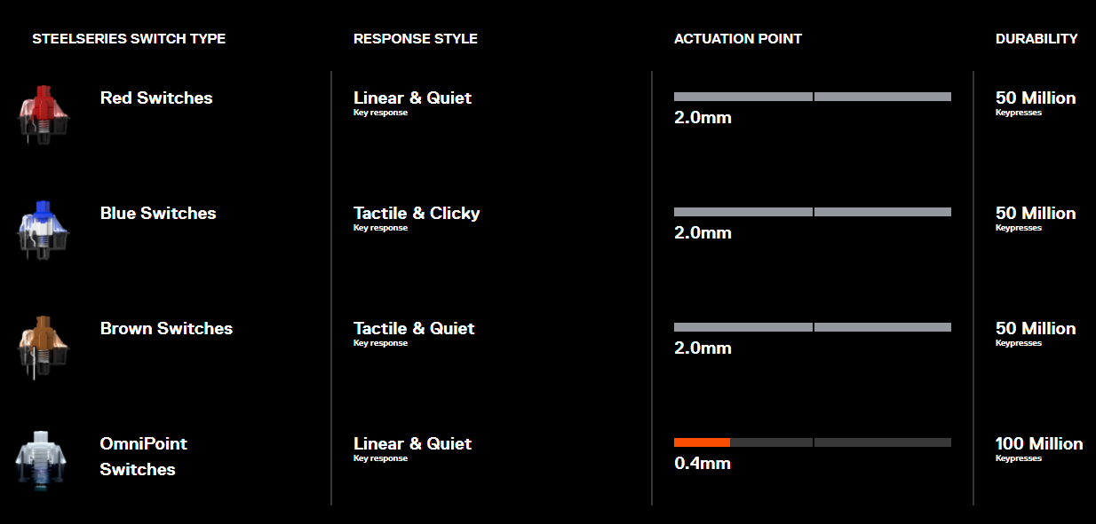 Клавиатурата Apex 7 TKL има механични суичове, които гарантират 50 милиона клика, използвайки линейни червени превключватели за плавно активиране. Apex 7 също ще ви предложи интегриран OLED Smart Display и нечуплива рамка от алуминиева сплав.