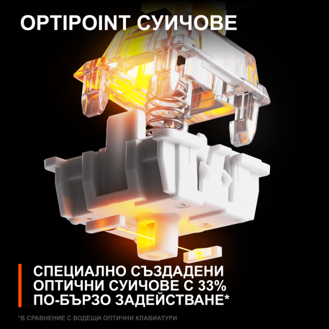 Бъди по-бърз от опонентите си. Иновативните оптични бутони OptiPoint реагират мигновено на промените в светлината и в комбинация с точката на задействане от 1 мм ще ти спечелят първото място.