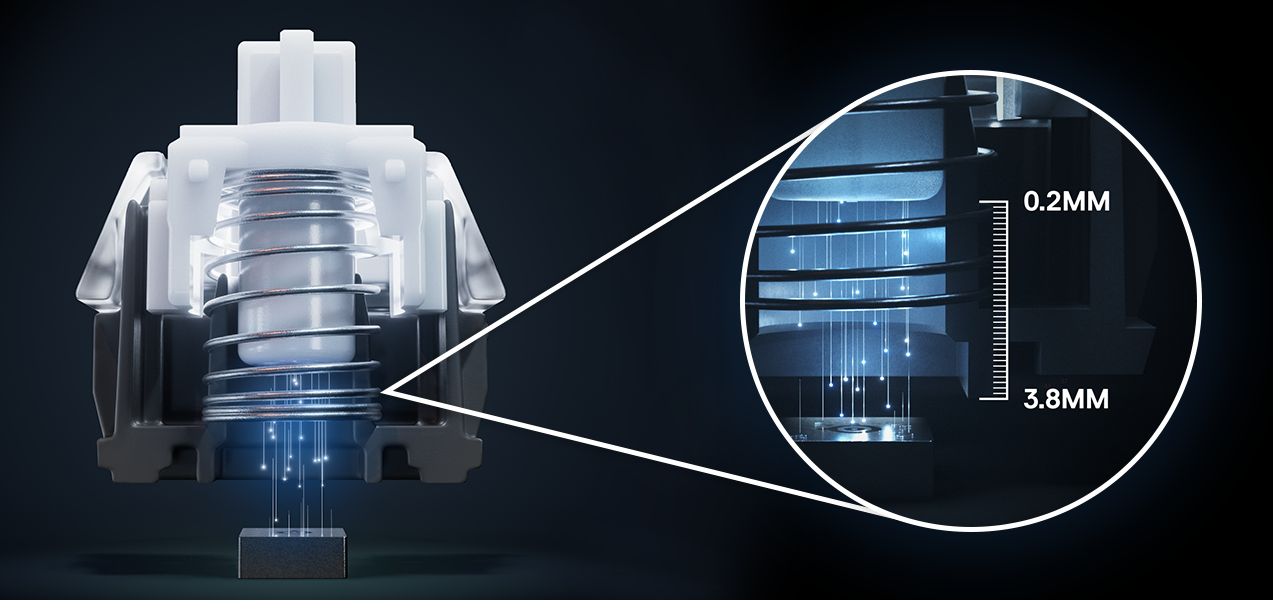 Направете клавиатурата своя собствена с възможността за индивидуално регулиране на разстоянието за регистрация на всеки бутон с точност до 0,1 мм. Настройте клавишите за леко докосване на 0,2 мм или изберете дълбоко натискане с 3,8 мм за решително натискане на бутоните.