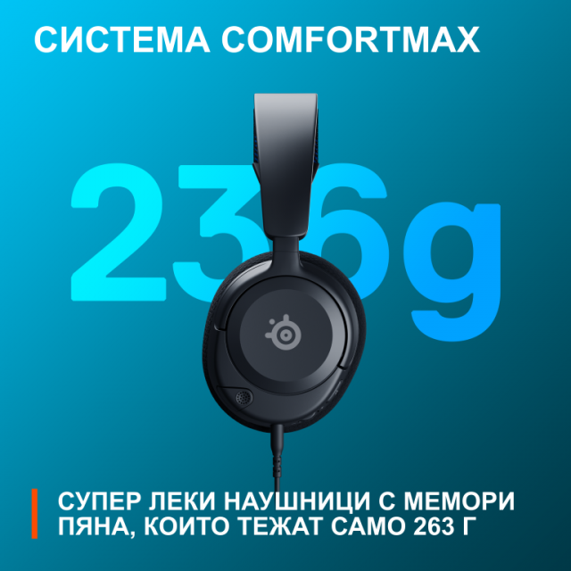 - Регулируеми за перфектно прилягане - Системата ComfortMAX включва регулируеми по височина, въртящи се наушници с възглавнички от мемори пяна. Олекотеният дизайн ти осигурява комфорт, независимо колко дълго играеш.