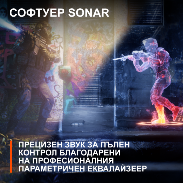 Параметричен еквалайзер Pro-Grade Почувствай се като повелител на звука благодарение на софтуера Sonar и регулирай почти всеки аудио аспект с помощта на професионален 10-лентов параметричен еквалайзер. С няколко бързи клика маркирай появата и движенията на противниковия отбор, като използваш предварително зададени настройки, създадени съвместно с най-добрите esports професионалисти.