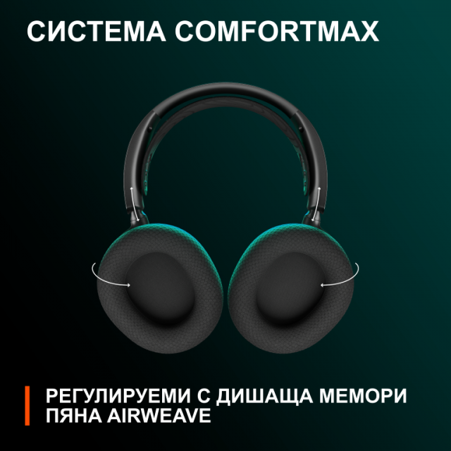 - Регулиране за перфектно прилягане - Системата ComfortMAX включва регулируеми по височина, въртящи се наушници с мемори възглавничка AirWeave и еластична лента. Леката стоманена конструкция на слушалките е създадена, за да издържи дълго.