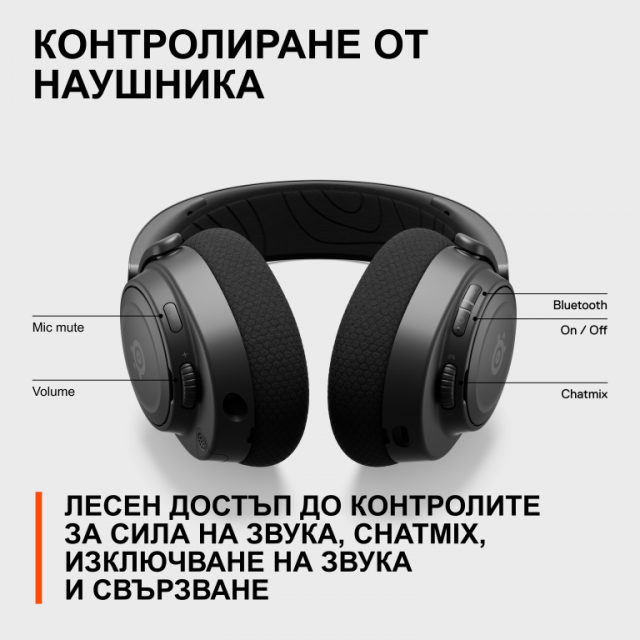 Регулирайте силата на звука, настройте баланса на звука от играта и чата с ChatMix, заглушете се напълно, отговаряйте на обаждания и се свържете с бутона Bluetooth - всичко това е в обсега на ръката ви, без да излизате от играта.