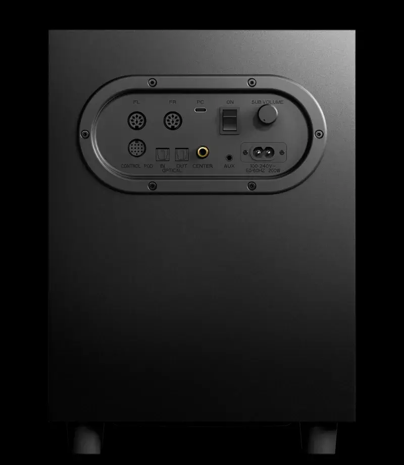 PC / Mac Connection (2.1/ 5.1): USB PlayStation 5 / PlayStation Connection (2.1/ Upmix to 5.1): USB Mobile Connections (2.1/ Upmix to 5.1): Aux, Bluetooth Bluetooth: v4.2 Headset Connection: 4-pole 3.5mm Auxiliary Connection: 3.5 mm Optical In (2.1/ Upmix to 5.1): Toslink Optical Passthrough: Toslink Included Connectors: USB-C to USB-A Cable (6'5" / 2m), Subwoofer Power Cable (6'5" / 2m), Wireless Rear Power Cable (6'5" / 2m) |