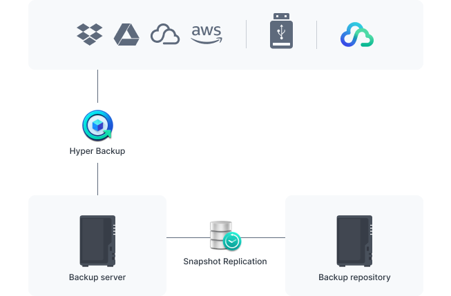 Back up your entire NAS, including system settings and applications, or select specific folders. Secure all backup data to multiple destinations. Learn more