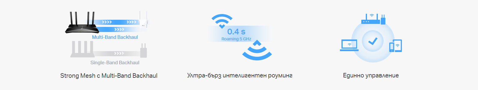 | OneMesh | Поддържа се OneMesh Без да подменяте съществуващите си устройства или да купувате изцяло нова Wi-Fi екосистема, OneMesh ви помага да създадете по-гъвкава мрежа, която покрива целия ви дом с продуктите на TP-Link OneMesh |