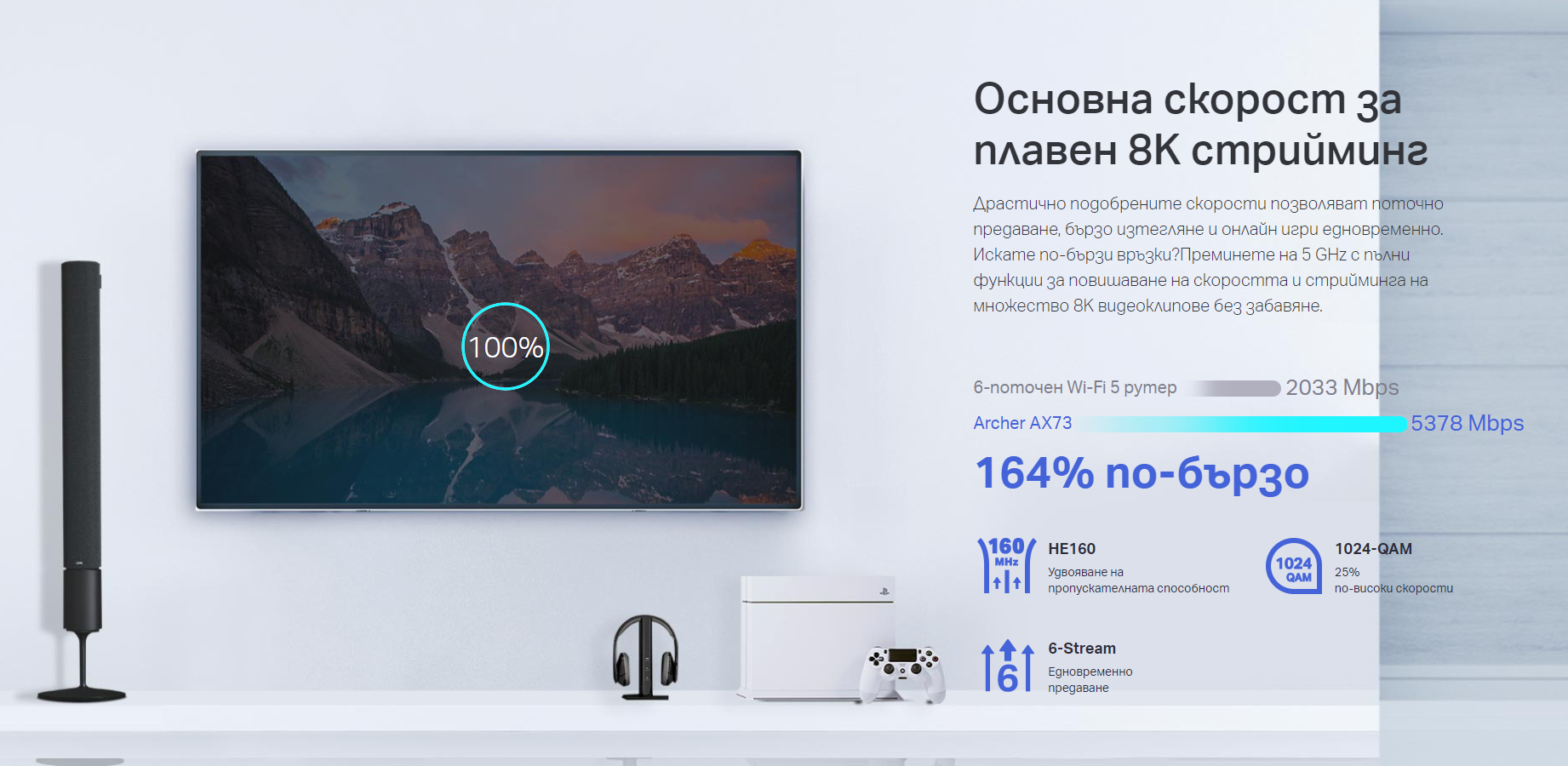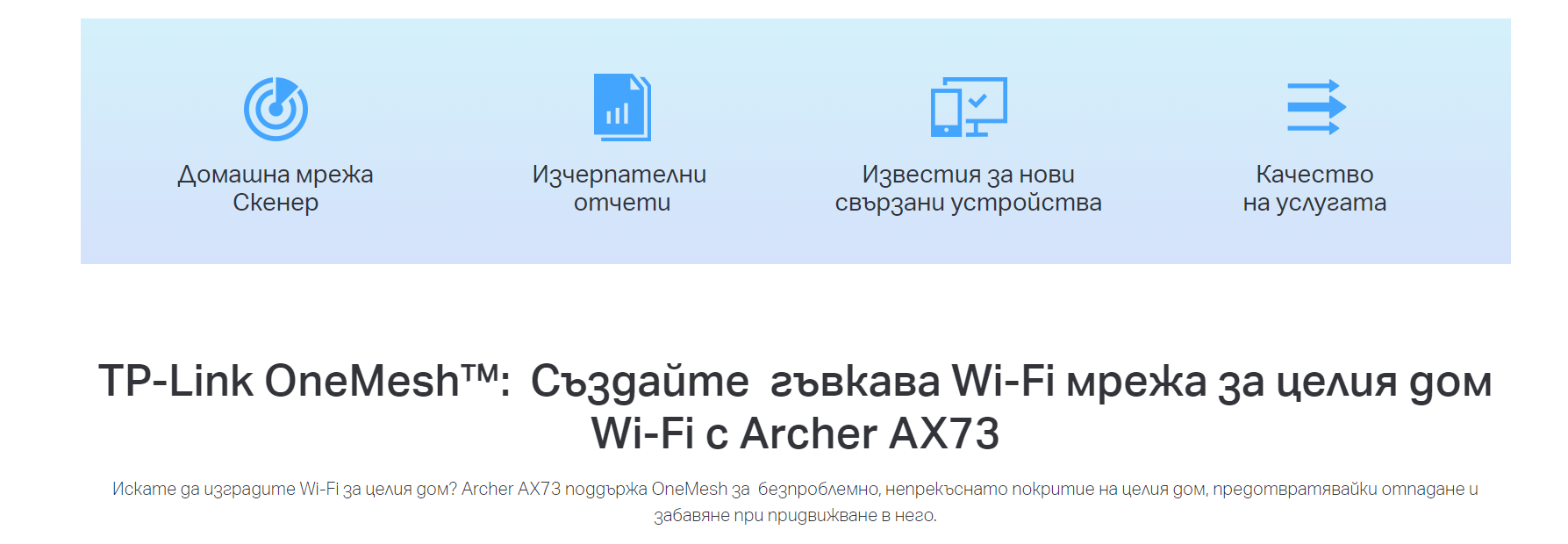 Безжичен рутер TP-Link Archer AX73, AX5400 двулентов Gigabit Wi-Fi 6 с OneMesh технология