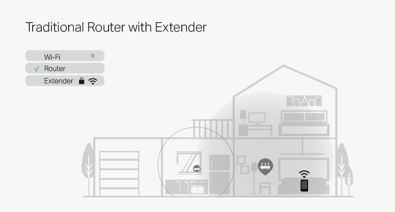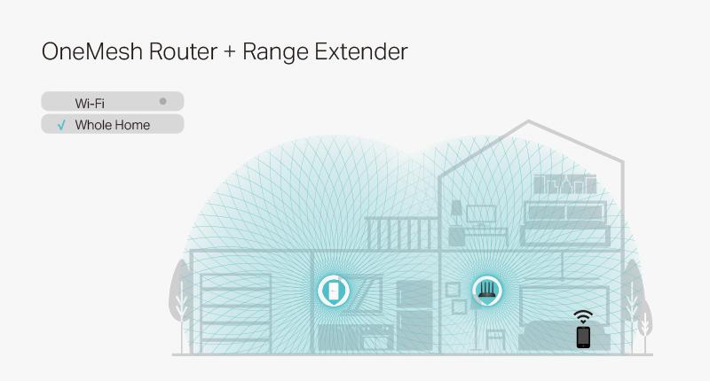 OneMeshTM удължител на обхват към рутер OneMesh. Няма повече търсене на стабилна връзка.
