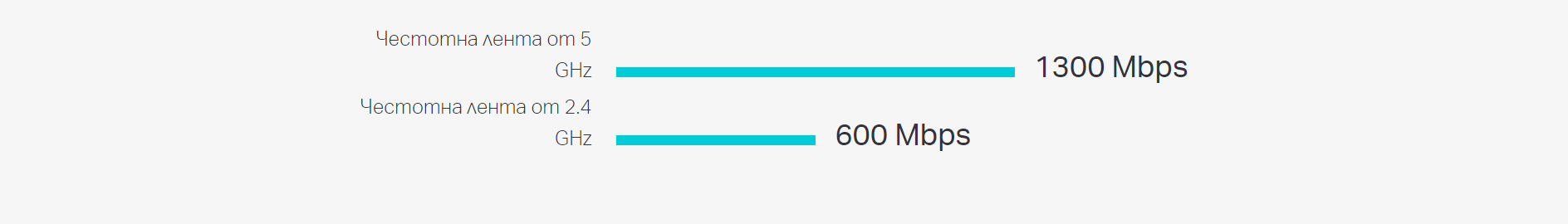 - 802.11ac Wave2 Wi-Fi - 1300 Mbps в 5 GHz- овата честотна лента и 600 Mbps в честотната лента от 2.4 GHz.