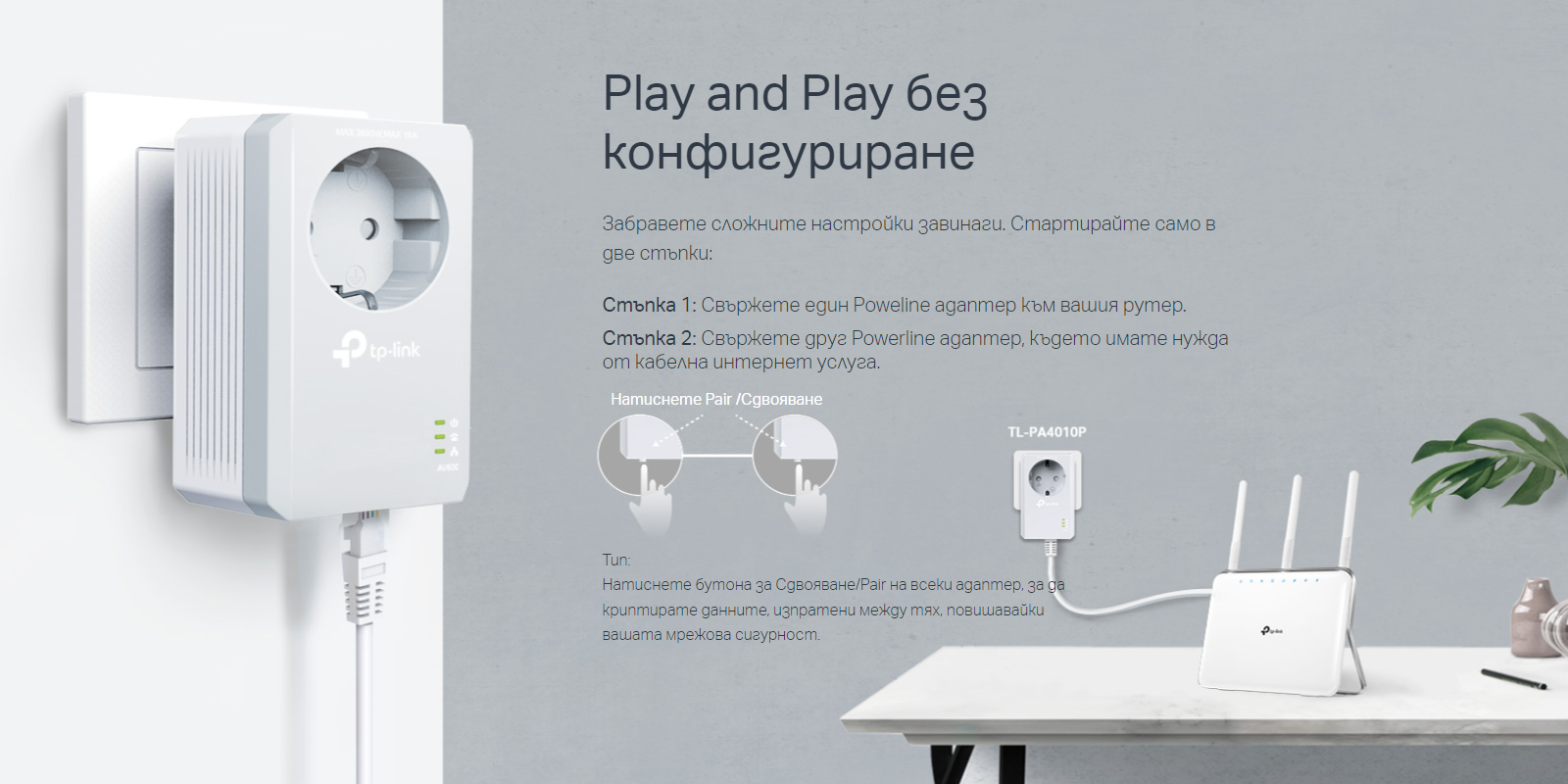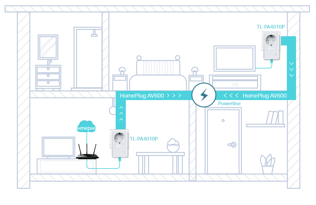 трансфер на данни до 600 Mbps по домашната електрическа верига на дължина до 300 метра. TL-PA4010P KIT е отличен избор за