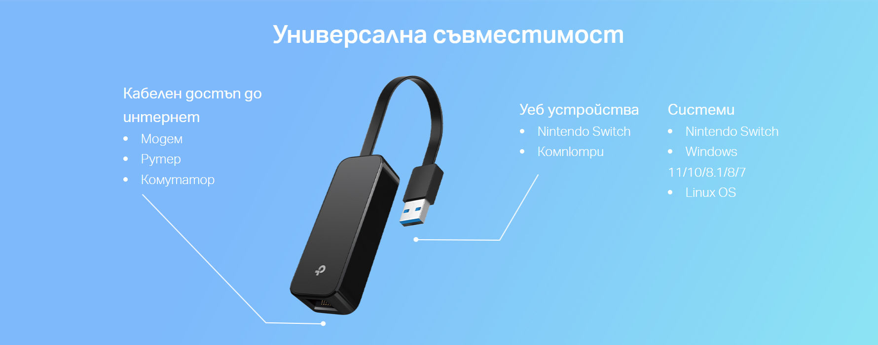системите без вграден RJ45 Ethernet порт.