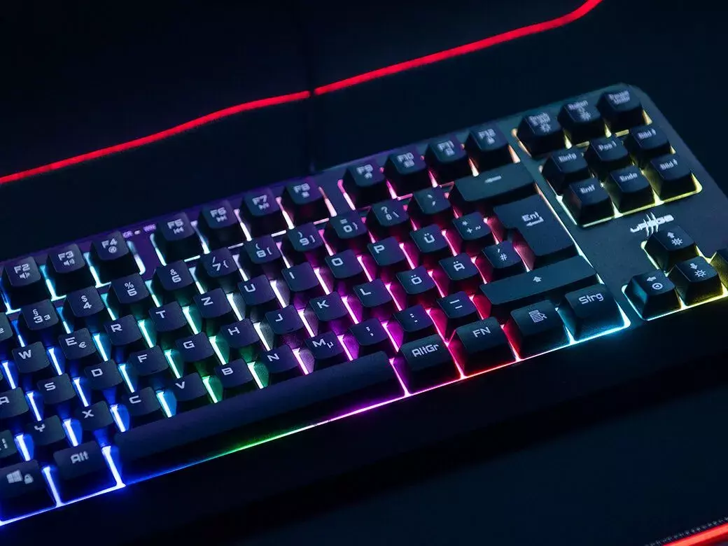 With the essential RGB gaming keyboard Exodus 220, you can concentrate fully on your game. Thanks to the tenkeyless format, the keyboard takes up less space on the desk, giving you more room for mouse movements. The compact slim-size keyboard does not have a number pad and still offers you all the functions you need for eSports gaming. It's also ideal if you want to take it with you to tournaments or LAN parties, as the ultra-slim and lightweight keyboard is easy to transport.