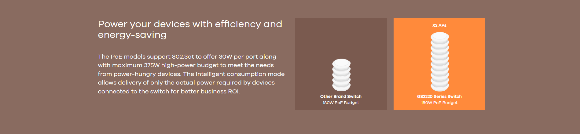 | 802.3at PoE ports | 24 | Total PoE budget (watts) | 375 |