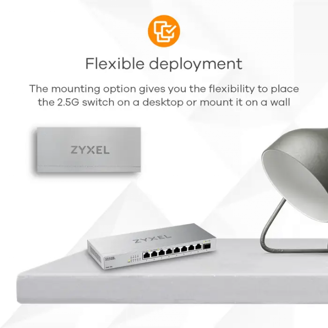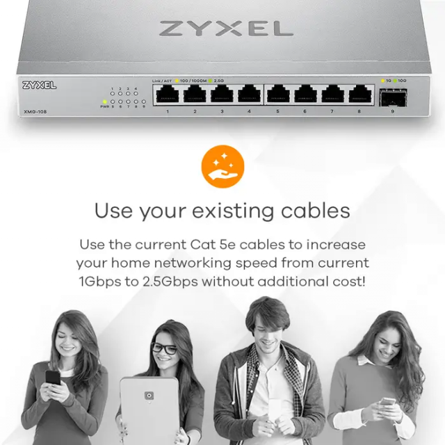 Суич ZyXEL XMG-108, 8 портов 2,5Gb + 1xSFP+, неуправляем
