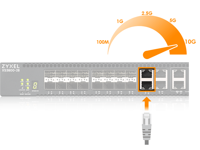 Multi-Gigabit RJ-45 ports support 100M, 1G, 5G, 2.5G and 10G speeds.