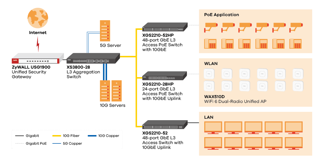 XS3800-28 offers a maximum of 24 10G fiber ports or 12 10G copper ports that are for most flexible adoption to your networks.